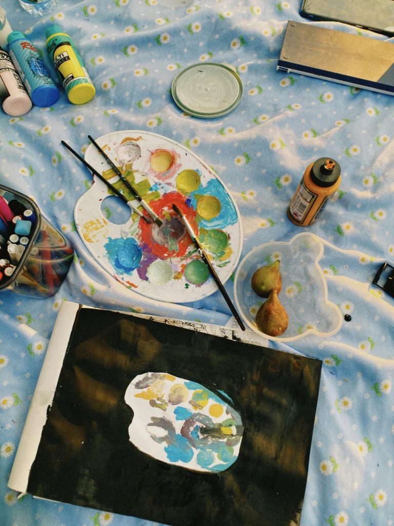 - Pregătiți materialele: asigurați-vă că aveți instrumentele necesare – vopsele, pensule, hârtie, lut sau alte materiale creative.